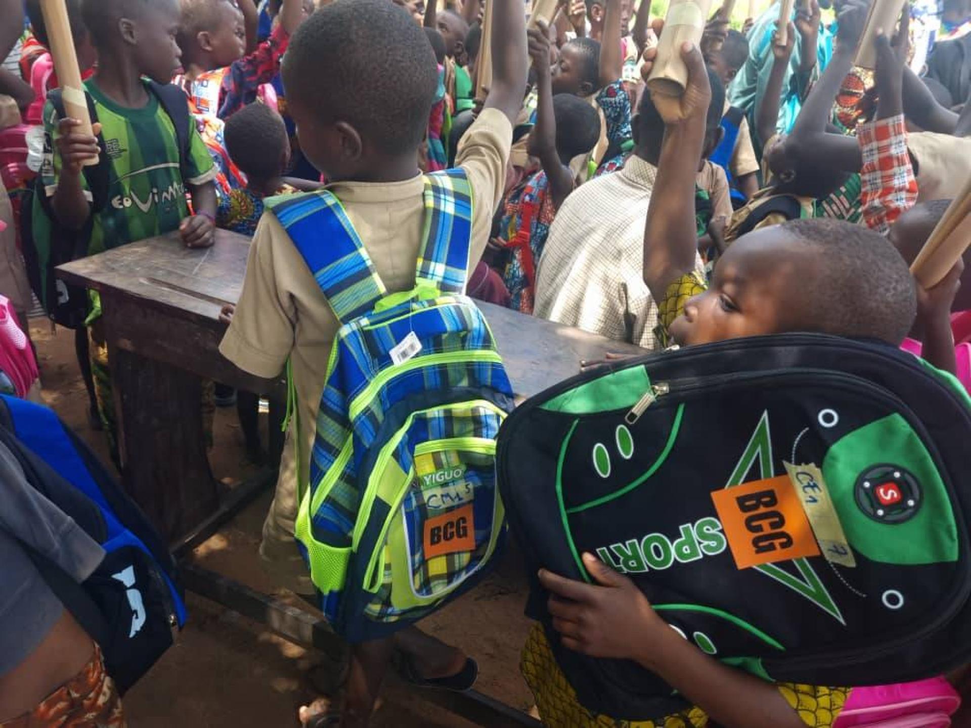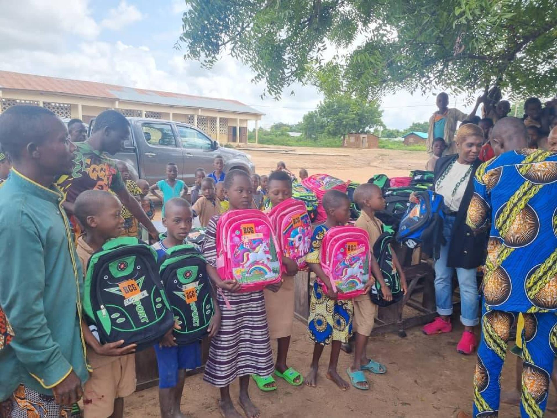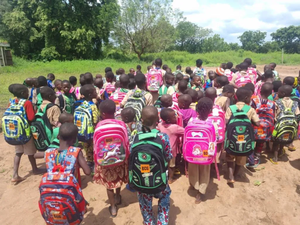 BCG (Bénin Carrière Granulat) offre des sacs à dos remplis de fournitures scolaires essentielles aux jeunes écoliers du département du Zou, pour aider les élèves et leur famille.